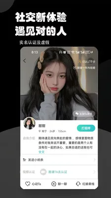 2、其全实名全方位认证,为心动和缘分保驾护航,让用户交友环境真实安全。