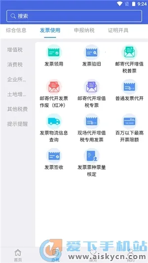 2、功能多样:涵盖信息查询、税收业务、税法宣传、办税服务等类别,有发票认证、发票查验、大厅流量预约服务等 16 项功能模块。