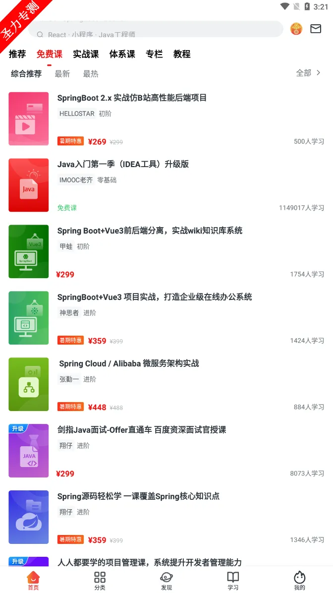 2、它拥有超10000免费学习视频课程,还有完整规划好的学习路径和企业级实战项目,更有一线技术大牛授课,能帮助学习者打牢技术基础,积累开发经验。