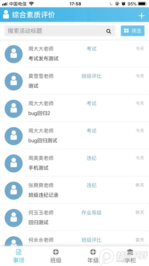 4、应用优势明显,能设计评价活动、以标准和科学方式评价、综合考虑学生优点;功能上可查看年级、学校、个人发布及班级活动,还能为学生建立综合素质档案,构建纵向成长树。