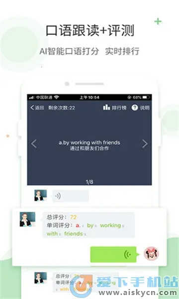 2、软件功能丰富且实用,听说读写功能齐全,有免费课本点读、复读跟读、连读、口语评测等功能,还能进行AI智能评分和实时排行,让孩子在轻松快乐中学习英语。