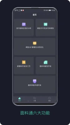 2、该软件功能丰富,有面料选择、颜色配色、创新工艺、办公系统、数据管理等功能,能进行智能分析,帮助调整营销计划,还可记录面料相关数据信息,且文件传输安全。