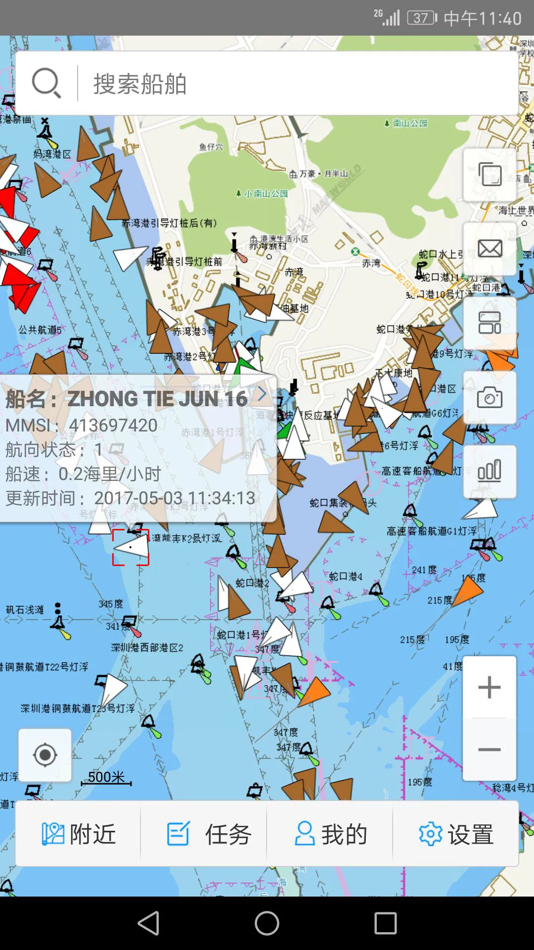 3、一键搜索轨迹:用户可以通过一键搜索功能,快速查找特定船舶,并查看其历史轨迹。