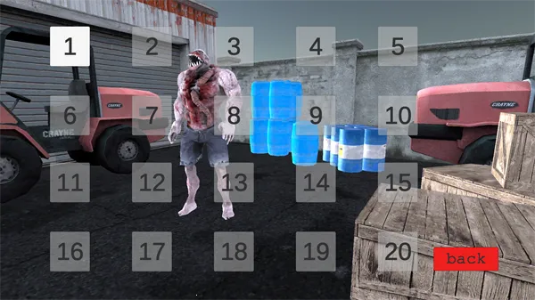 3、新手攻略方面,选择PLAY开始游戏,选第一关闯荡,熟悉基本操作,找合适位置击杀僵尸,击败所有僵尸获关卡胜利。