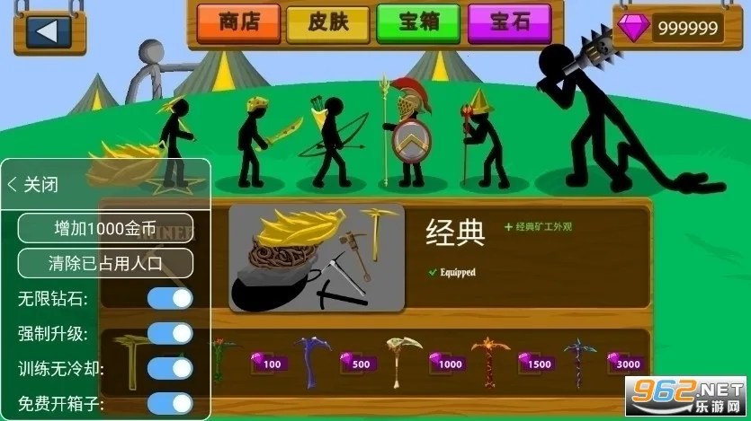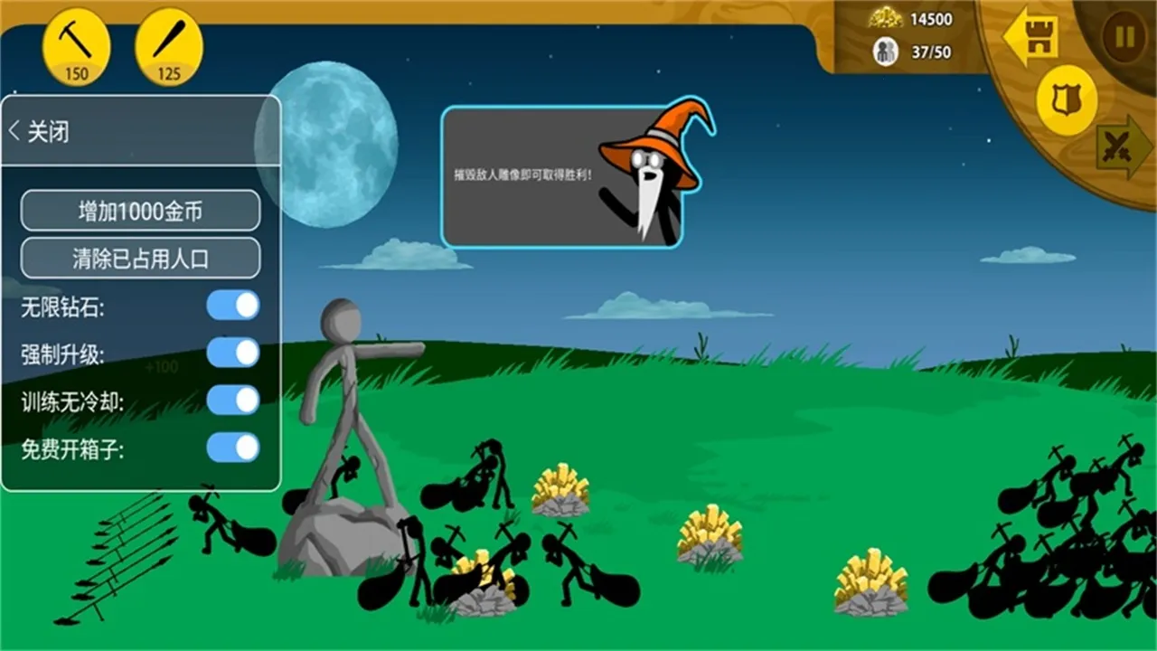 想在火柴人战争的世界里轻松获胜吗?那就来试试火柴人战争遗产ff修改版吧!它能给你带来超多便利。修改版菜单超厉害,增加1000金币、清除已占用人口、升级无限制、钻石超多,还有训练无冷却、箱子随便开等功能。游戏亮点满满,有诙谐漫画风格,各种奇葩火柴人战士等你召集组建强大军队。玩法丰富,能让你参与历练战争任务,完成策略对决。攻略也很实用,比如前期先做出黄金矛士带动军团,再搭配剑士、弓箭手等不同兵种,运用迂回战术等,轻松应对各种敌人。无论是想快速积累资源,还是在战斗中巧妙布局,火柴人战争遗产ff修改版都能满足你,帮你在火柴人战争世界里畅玩,享受热血冒险,赶紧来体验吧!