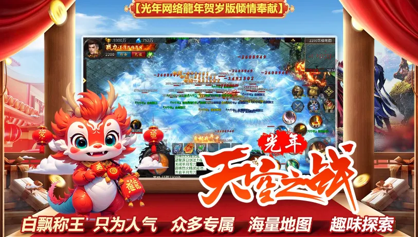 光年天空之战2025官方正版,热血开黑激斗。有复古历练对决,多重活动与副本任务。全新竞技自由,行会携手强者,探索高爆装备。特色是强者同屏厮杀,限定BOSS高爆,职业多样。亮点有热血传奇世界,激烈混战,蓝光复古画风。
