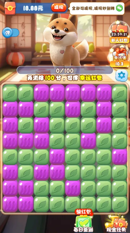 旺旺人生(消除闯关赚红包)是一款消除闯关游戏。玩法经典休闲合成,点击去块获奖励,合成数字得点数。有多种任务活动,画面清新,操作简单易上手,能让玩家在闯关赚红包的同时感受休闲消除乐趣。