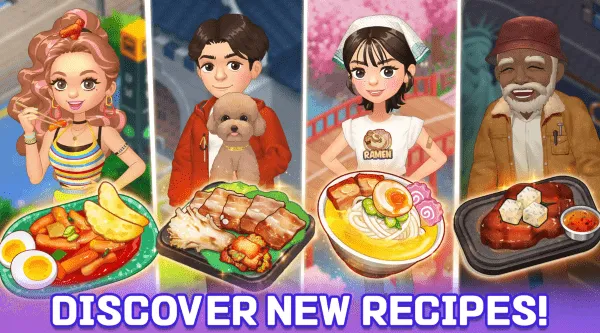 2、游戏中有多种美食可尽情尝试,顾客种类繁多需满足不同订单要求,食材用金币购买,完成订单能收集卡通角色。