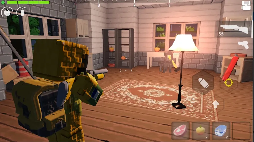 2、收集枪械和子弹,消灭更多僵尸,直接开火不给僵尸机会,同时监测自身健康、饥饿和口渴。