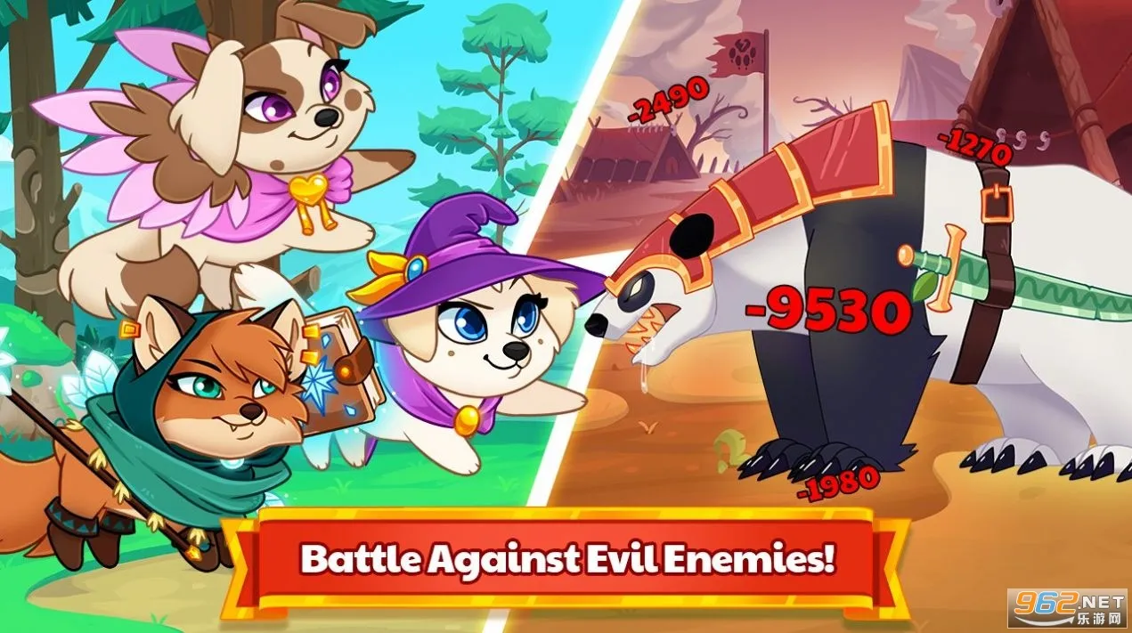1、丰富的狗狗收集:超过45种不同狗狗英雄可解锁,还有超过100位不同的狗狗英雄可供收集,选择丰富多样。