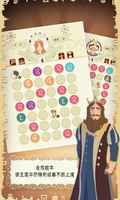 1、融合玩法独特:以玛丽十世奇幻世界为背景,玩家点击空格合并四个方向相同数字,推动角色从基础数字逐步进化为王子、国王等,超过6的数字会转化为王子或王后,多位王子结合成国王,国王与王后结合诞下新一代玛丽公主,延续王朝。
