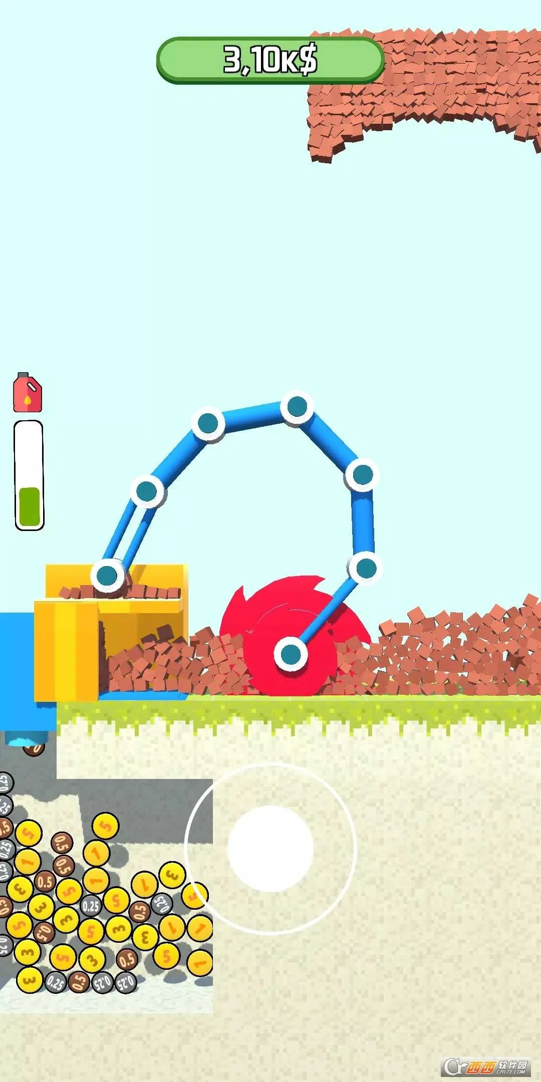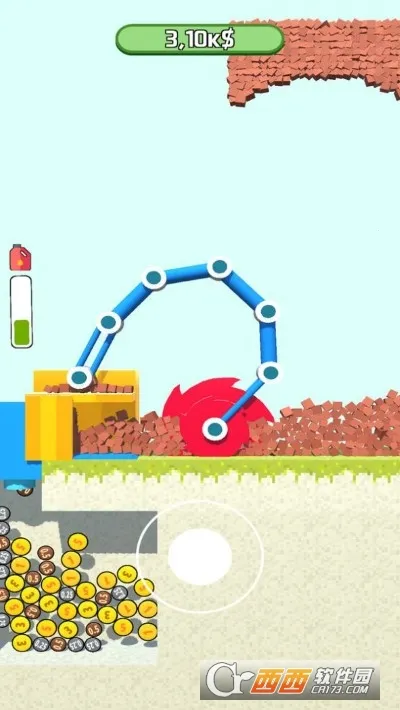 2、通过拆除获金币,升级钩臂力量、钩体尺寸、移动速度、钩臂长度及稳定性等核心维度。
