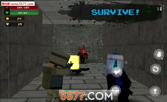 在随机生成的方块地图中,玩家扮演末世幸存者对抗无尽尸潮,击杀僵尸可提升伤害、射速、弹夹、血量、护盾五大属性,金币投入能瞬间反馈战力,核心数值即时成长,策略深度与爽快成长感并存。
