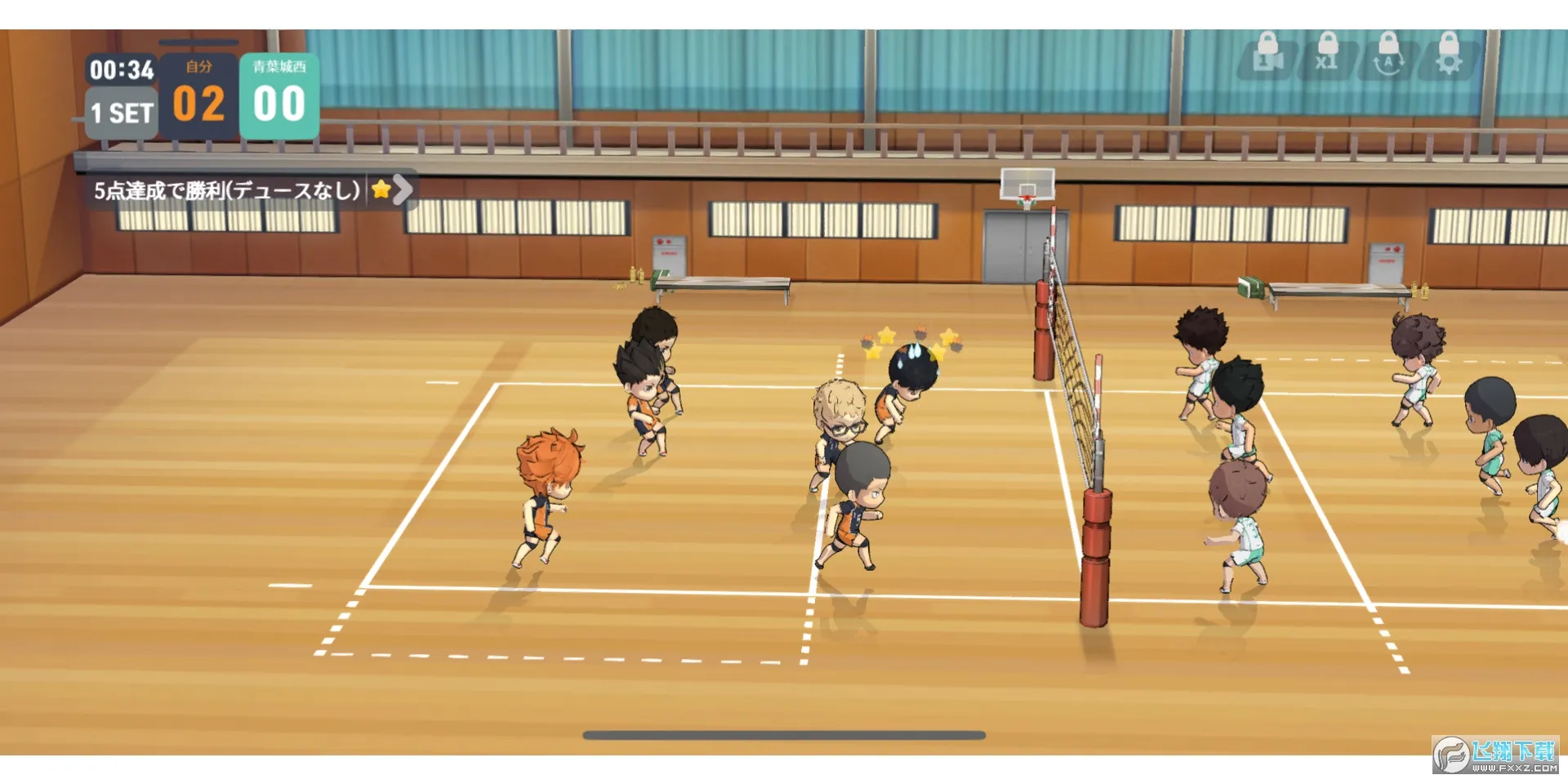 2. 能打造自己的梦之队,与来自原版的角色相聚,如排球少年与乌野猫间青叶城井伊达贡戈等各种学园选手见面,向顶峰发起挑战。