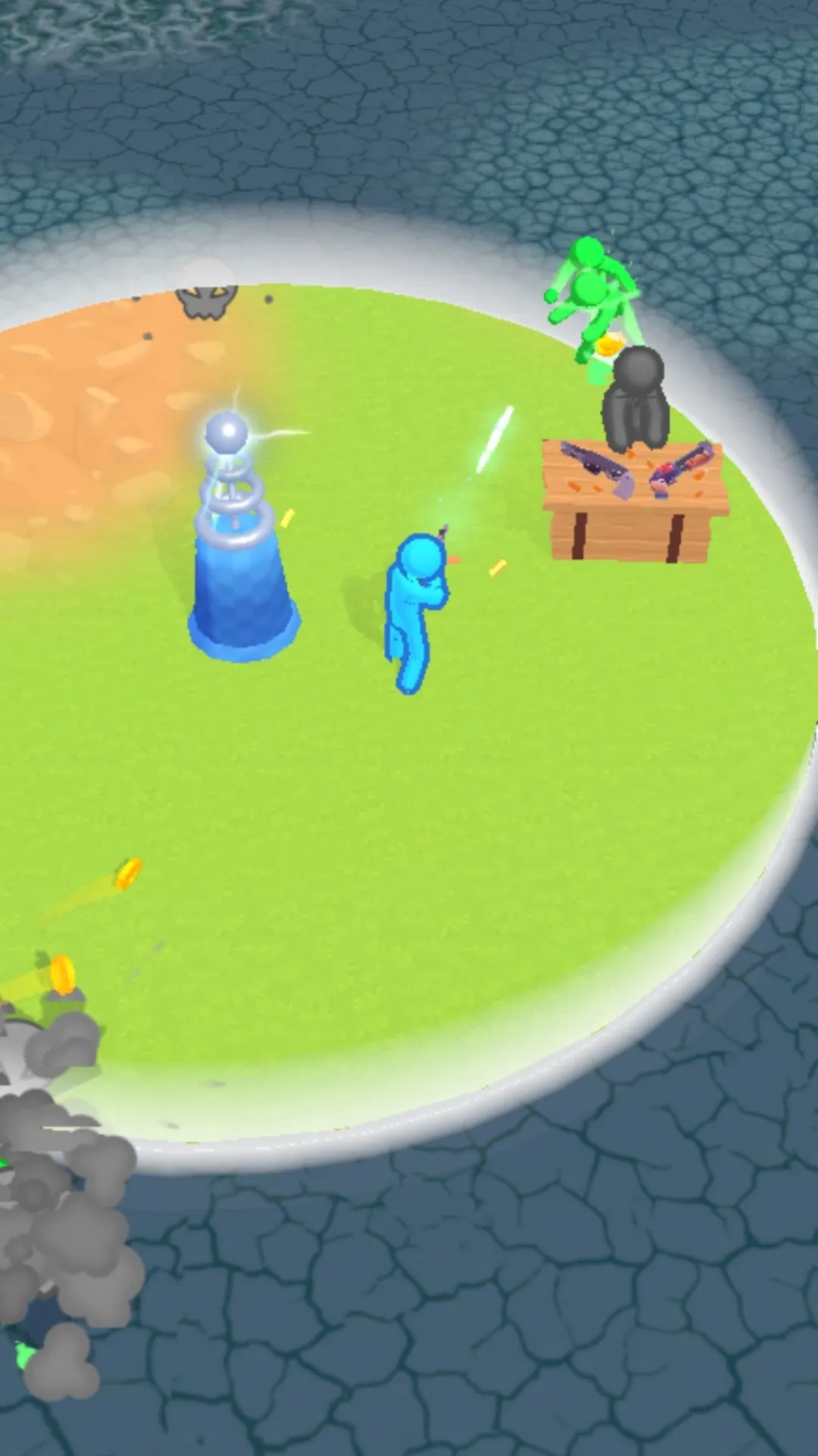 2. 进入游戏后在安全范围内与不同敌人对战,持续射击,通过击败敌人收集金币解锁新武器炮台。