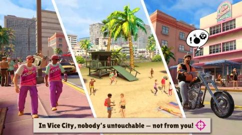 4. 独特游戏氛围:在具有迈阿密城市氛围的场景中,如海滩泳池派对、外星人入侵等疯狂事件里消灭罪犯,每个任务独具特色。