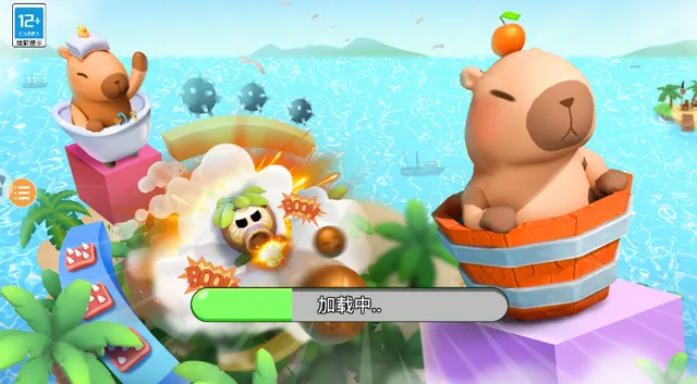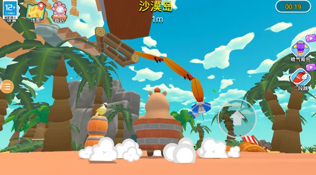 1. 玩家操控可爱水豚乘坐木桶载具跨越障碍冲向终点。