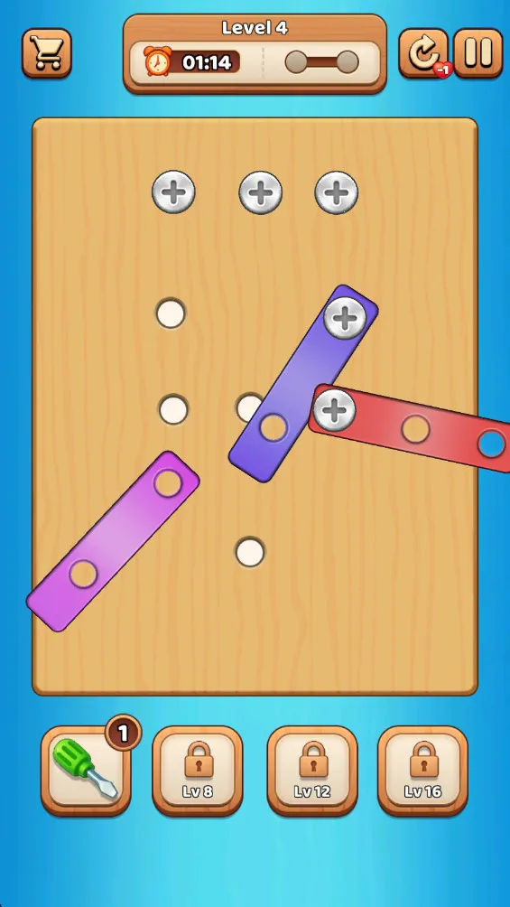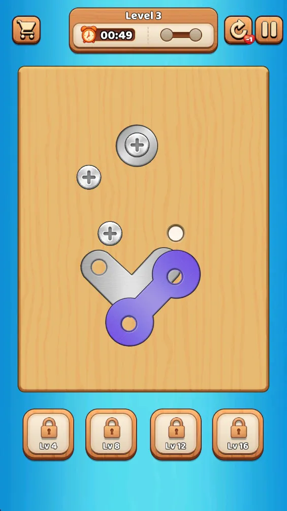 4. 具备重置功能可快速重试当前关卡,提示系统能高亮关键螺丝位置,全球排行榜激励玩家竞速挑战。