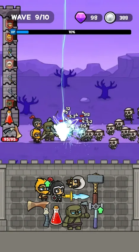 2. **丰富成长机制**:游戏注重角色和装备成长,通关关卡可获取大量资源,用于提升英雄属性和城堡建筑,通过合理分配资源与策略选择,逐步强化战斗力以抵御更强敌人。
