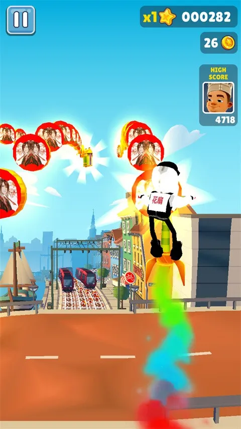 2、收集各种道具,道具能助力跑得更远,比如滑板可抵消一次因撞上列车等造成的游戏结束。
