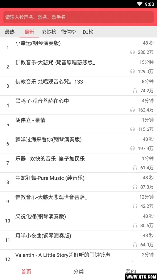 3、设有强大搜索功能,通过关键词可快速查找目标铃声,节省时间便捷获取心仪铃声资源。