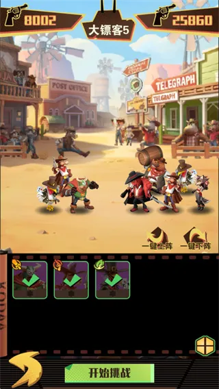 绝境猎人是西部题材卡牌游戏,融合策略布阵与放置玩法。玩家收集60余位风格各异动物角色,升级进阶搭配羁绊组传奇小队。队伍自动执行任务赚赏金,归来触发动态事件,体验纯正西部牛仔风情。