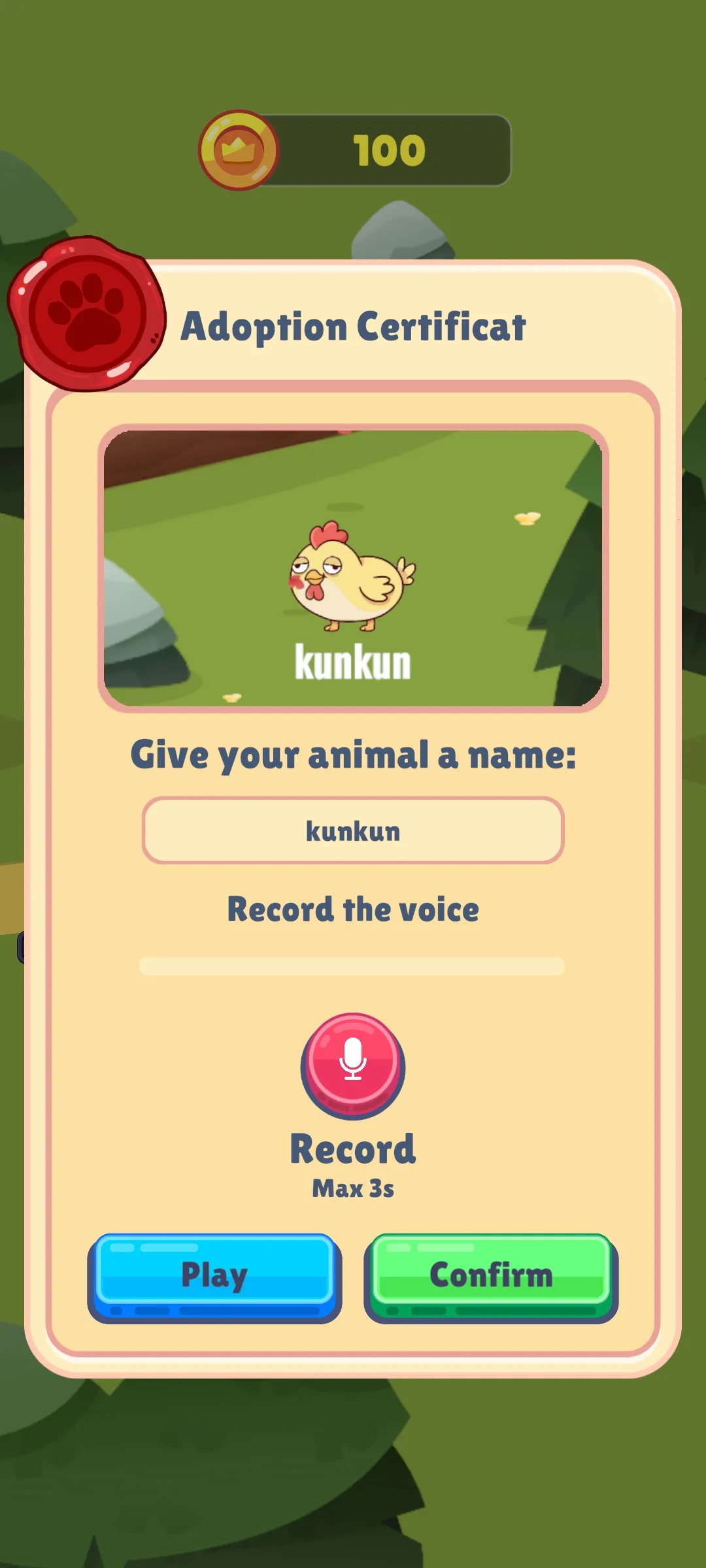 2、移动角色进行录制,看着动物说话赚取金币。