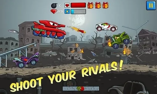 2. 可收集升级道具和射击敌人,也能猛踩油门超越其他车辆,还能利用山丘跳跃演出惊人特技赚取额外加分。
