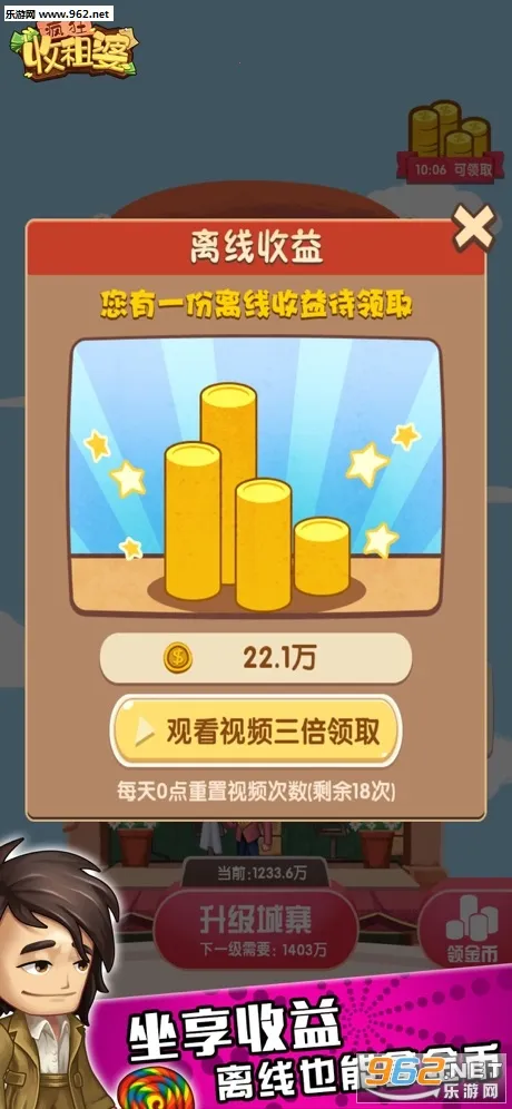 疯狂收租婆是一款q版画面的放置经营游戏。玩家化身包租婆,出租空闲房子赚金币,完成挑战解锁更多。玩法简单轻松,有多种特色玩法,如炒房、与租客互动等,还能享受躺着赚钱的快感,快来体验收租乐趣。