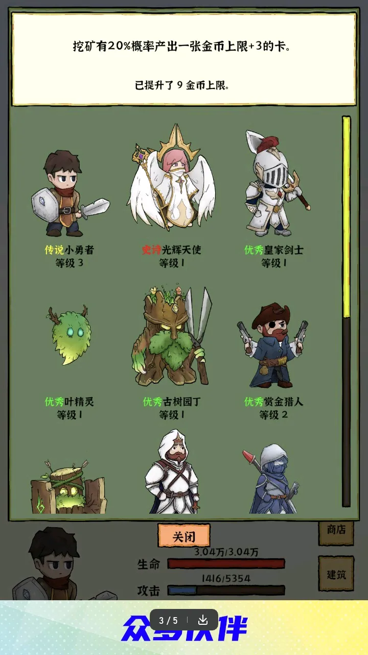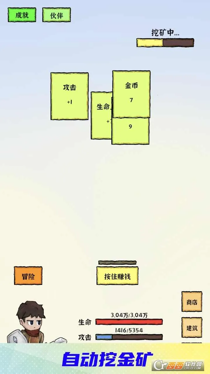 2. 游戏设计多种不同类型任务和关卡,玩家通过完成成就任务不断挑战,关卡中有敌人,能在文字显示下战斗获奖励,收集金矿产生的金币完成超多强化。
