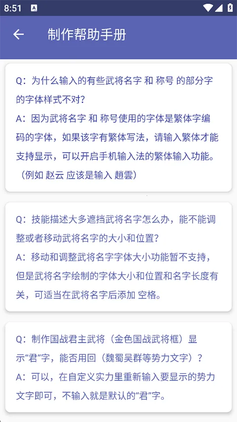 2、允许输入武将称号名字技能等添加相应文字描述,并支持设置武将名字繁体字及技能秒速。