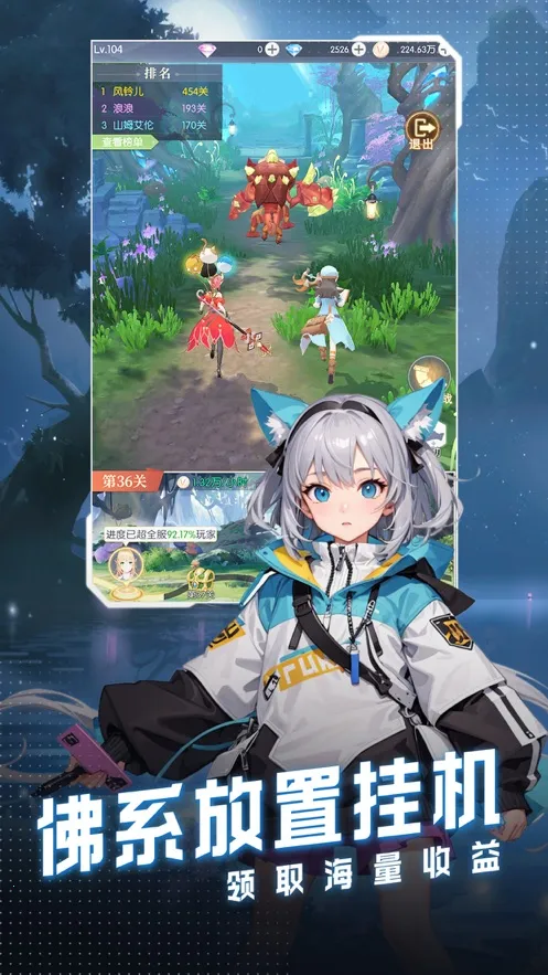 2、采用轻松休闲放置挂机玩法,自动战斗解放双手,护肝不累且收益丰厚。