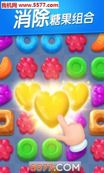 1、经典三消玩法,滑动交换相邻糖果,组成三个或以上同色组合进行消除,达成每关指定目标。