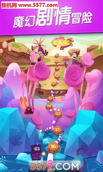 1、画面精致美丽,色彩缤纷的糖果大陆、精心绘制的游戏场景,带来惬意舒适之感。