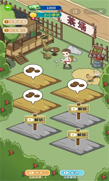 2、每天辛苦种植、采摘、售卖茶叶,过程中会遇搞事人捣乱,需运用智慧应对。