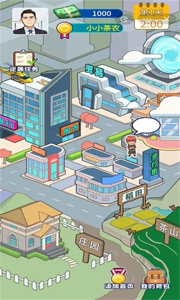 1、玩家化身强哥,从农村茶山起步,合伙采茶攒资金,开启逆袭之路。