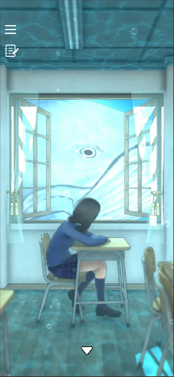 1、游戏将玩家带入安静且充满谜团的课后教室,窗外夕阳隐去后闪烁神秘蓝色光芒,暗藏等待揭开的秘密。