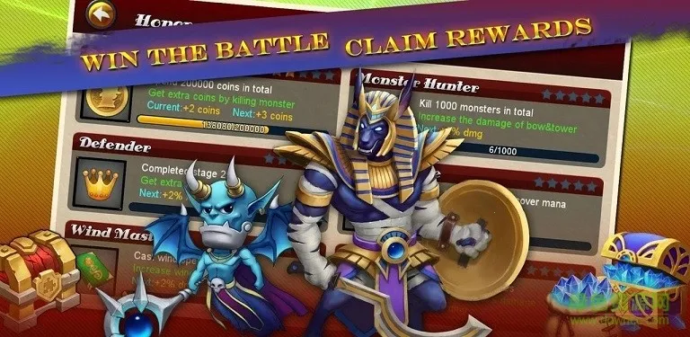 2、游戏元素丰富,多种弓箭、法术、防御塔等带来多样战斗效果。