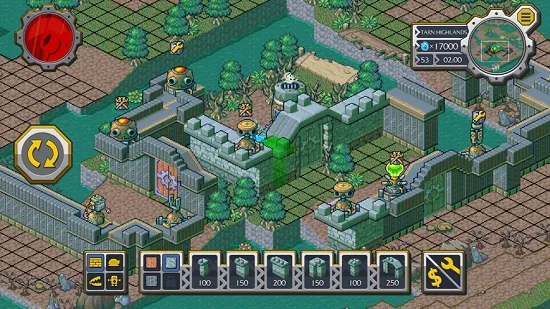 2、进入建造模式,能拖动下方围墙放置在指定处,点击无反应可旋转,放错能售卖,修筑好后可抵御发条人进攻,还能建造炮台。