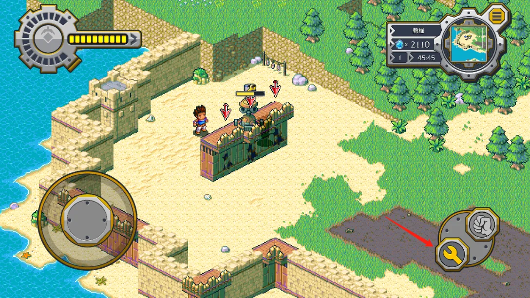 3、发条人被击败可搜刮源能用于建造或修理构筑物,靠近围墙点击修复按钮可修复围墙,战斗时能切换放置建筑并操控角色或炮塔作战。