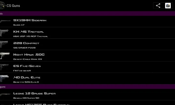 CS枪支(CS换弹音效查看)可查看CS内枪支道具,其换弹音效源自起源,能让用户清晰了解枪支情况,感受独特的换弹音效,为玩家带来不一样的游戏体验,助力更好地熟悉游戏中的武器道具。