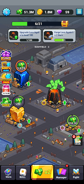 2、智能经理系统,招募不同技能的经理自动运营矿山,离线也能持续挣钱,升级经理能力可提高产量和利润。