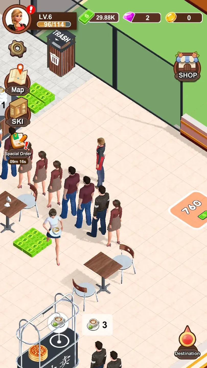 2、能从一台披萨机起步,开启配送披萨、服务顾客之旅,赚取小费。
