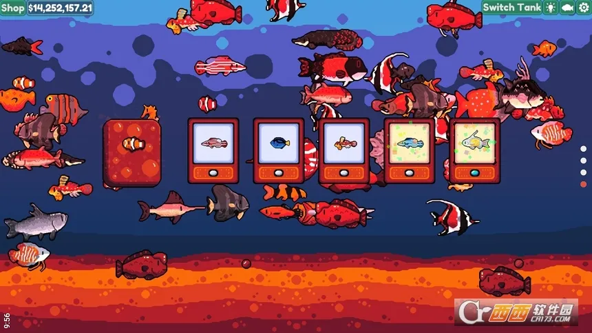 2. 能通过出售鱼类获取货币,在商店购买解锁新的鱼缸和装饰。