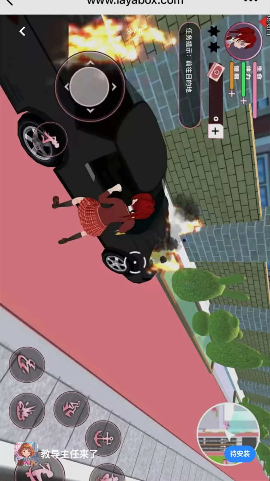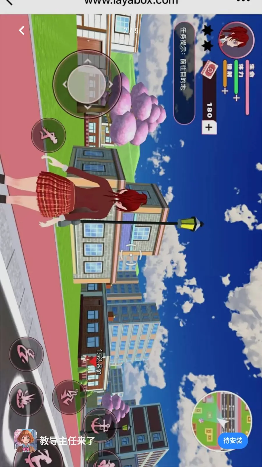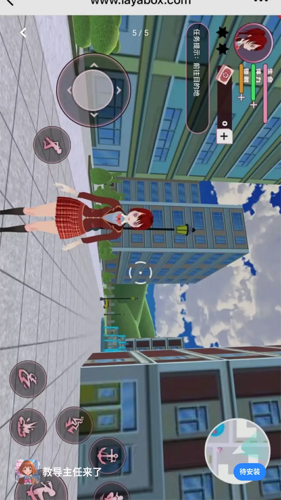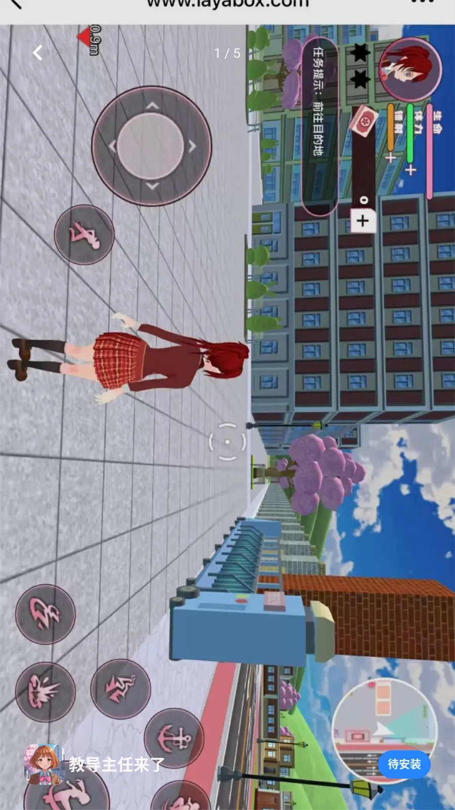 教导主任来了(二次元探索游戏)是一款色彩明快的二次元卡通风格手机游戏。玩家扮演红发少女,身着红格裙在城市街道自由探索,用虚拟摇杆控制移动,完成摧毁汽车等任务,界面有生命体力等数值,融合探索与轻度动作元素,体验轻松有目标。