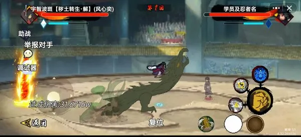 - 进入对战滑动遥杆控制走位,右侧屏幕是普攻技能和替身,先清空对手血条的一方获胜,必须击败对手的3名忍者才能完全胜利